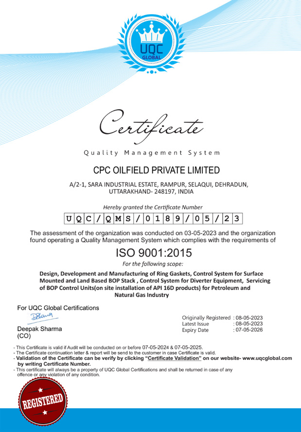 At Consolidated Pressure Control (CPC), quality and customer focus is of utmost importance. We strongly believe in providing total customer satisfaction through excellence in product & process development, building quality into the process, proactive approach to quality issues, quick response to customer, cutting-edge technology & price competitiveness.”